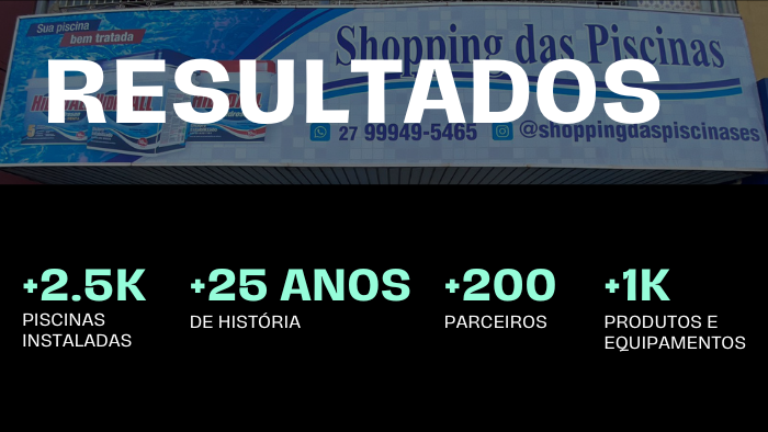 O Shopping das Piscinas já nasceu com experiência de mais de 20 anos no mercado de piscinas e similares através de seu fundador. Nesse período o Shopping das Piscinas criou a identidade comercial testada e aprovada por uma vasta quantidade de clientes e colaboradores, e desde sua fundação estabeleceu como objetivo principal um vínculo de confiança entre nossa empresa e nossos clientes, tornando-nos assim, verdadeiros parceiros de trabalho e acreditando que isso é possível se utilizarmos a melhor ferramenta disponível, a paixão pelo que fazemos.